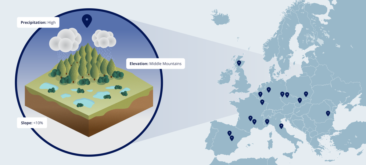 Several of Europe’s major rivers such as the Rhine, Meuse, Duero, Elbe and Po originate in middle mountain regions. The upper catchments of these rivers are characterised by elevations of 200 – 1200 metres, high amounts of precipitation and valleys with gentle slopes of less than 10 per cent.
